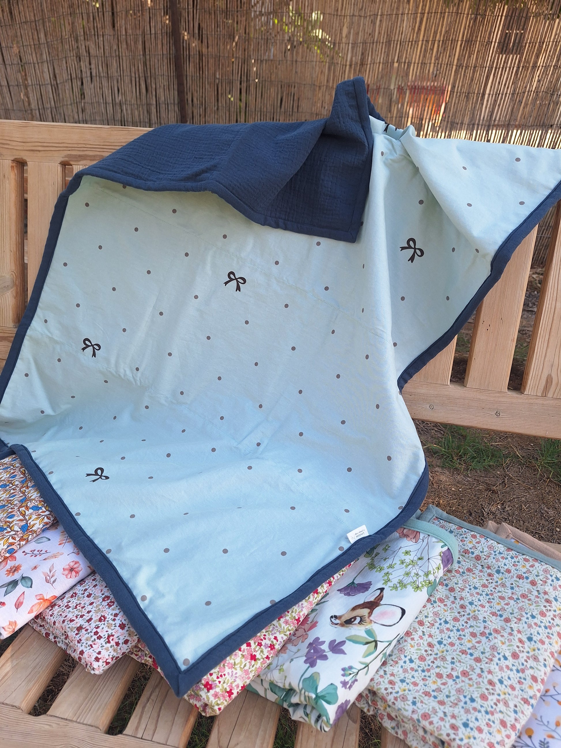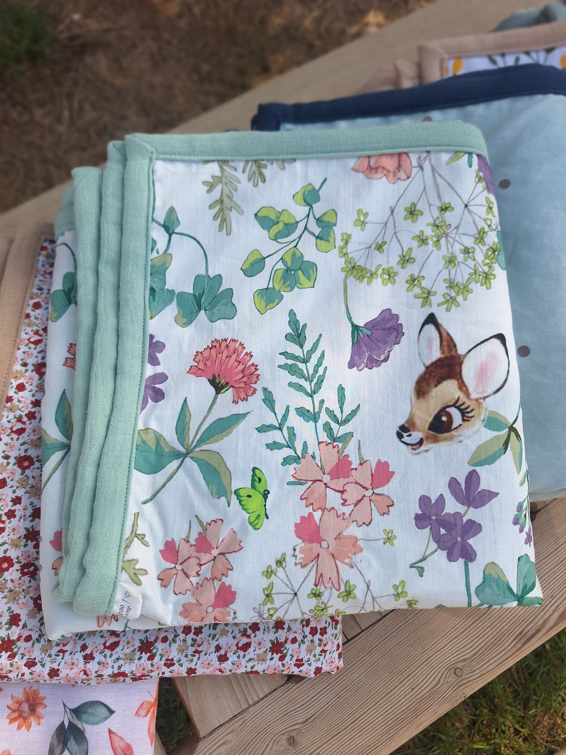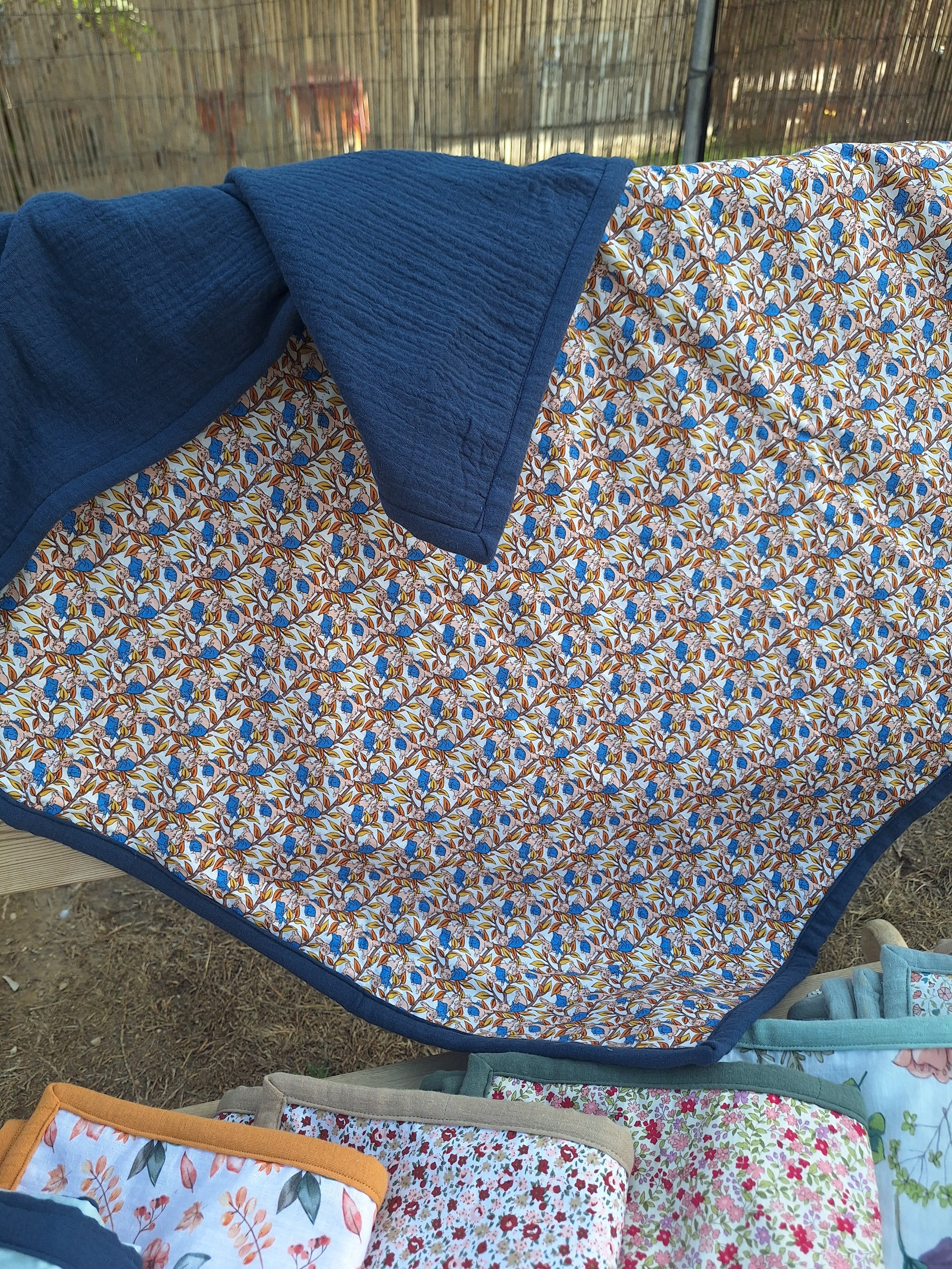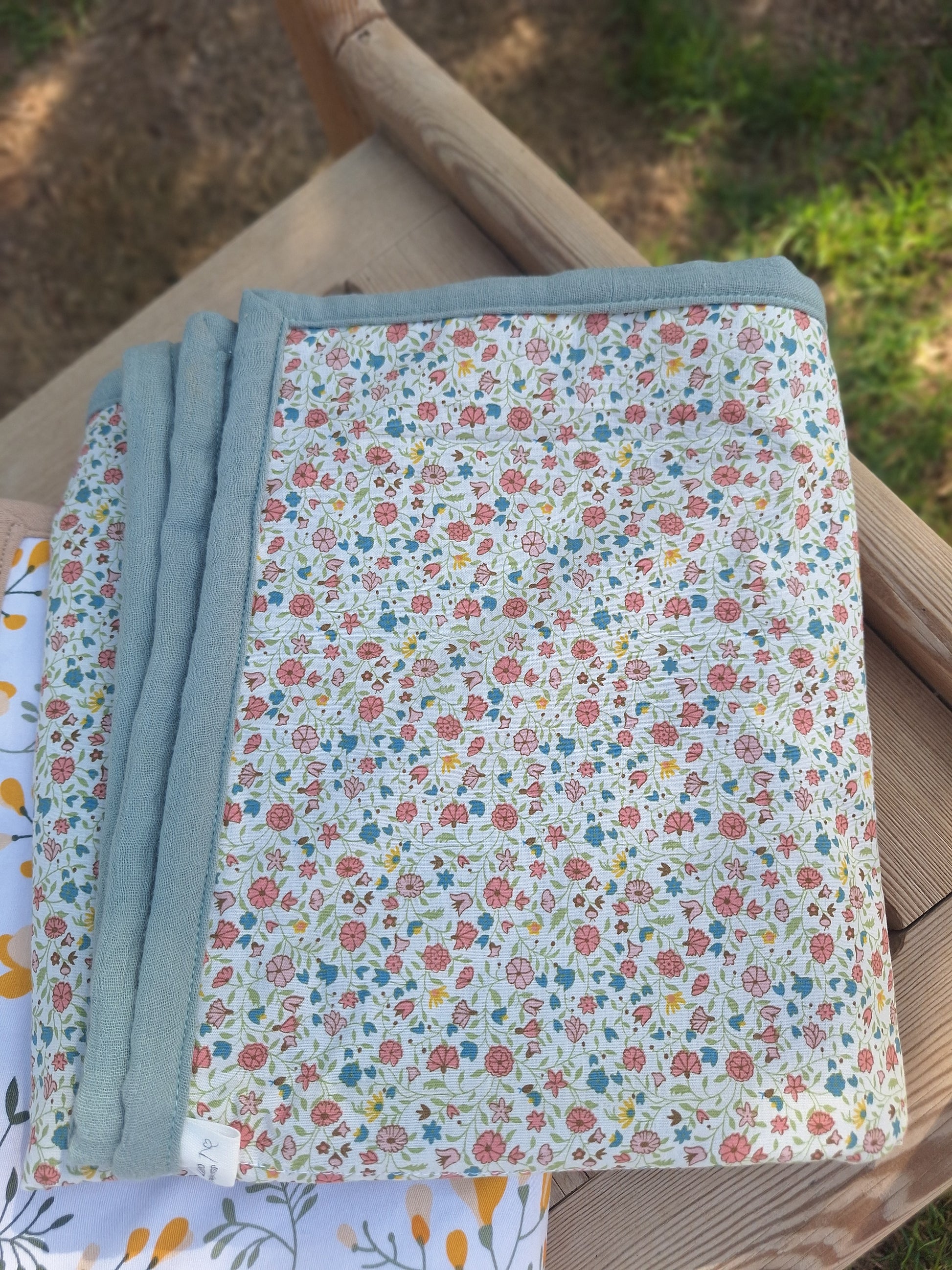 שמיכה תפורה בעבודת יד. עשויה כותנה צבעונית מצד אחד ובד טטרה נעים ורך מהצד השני.