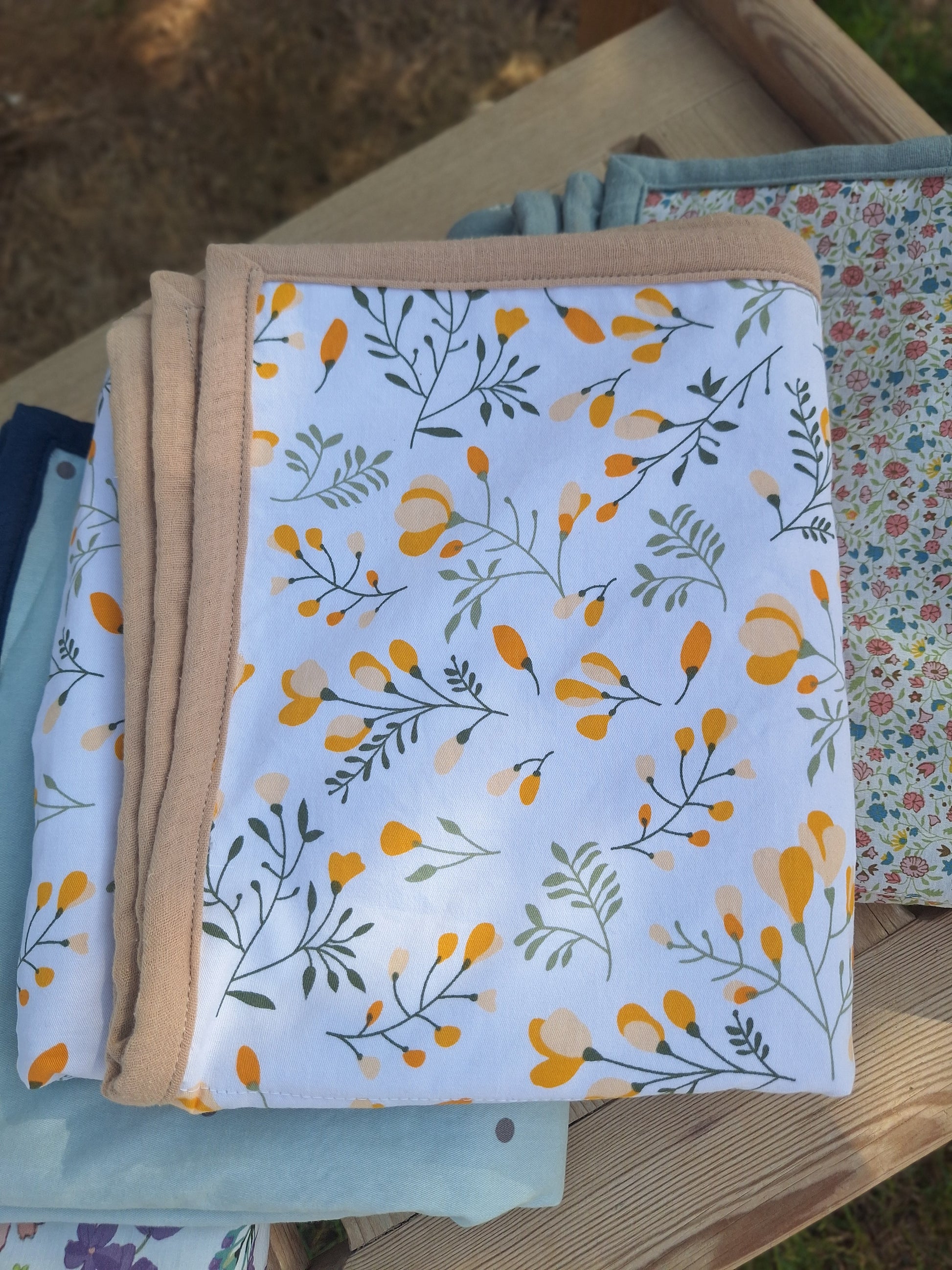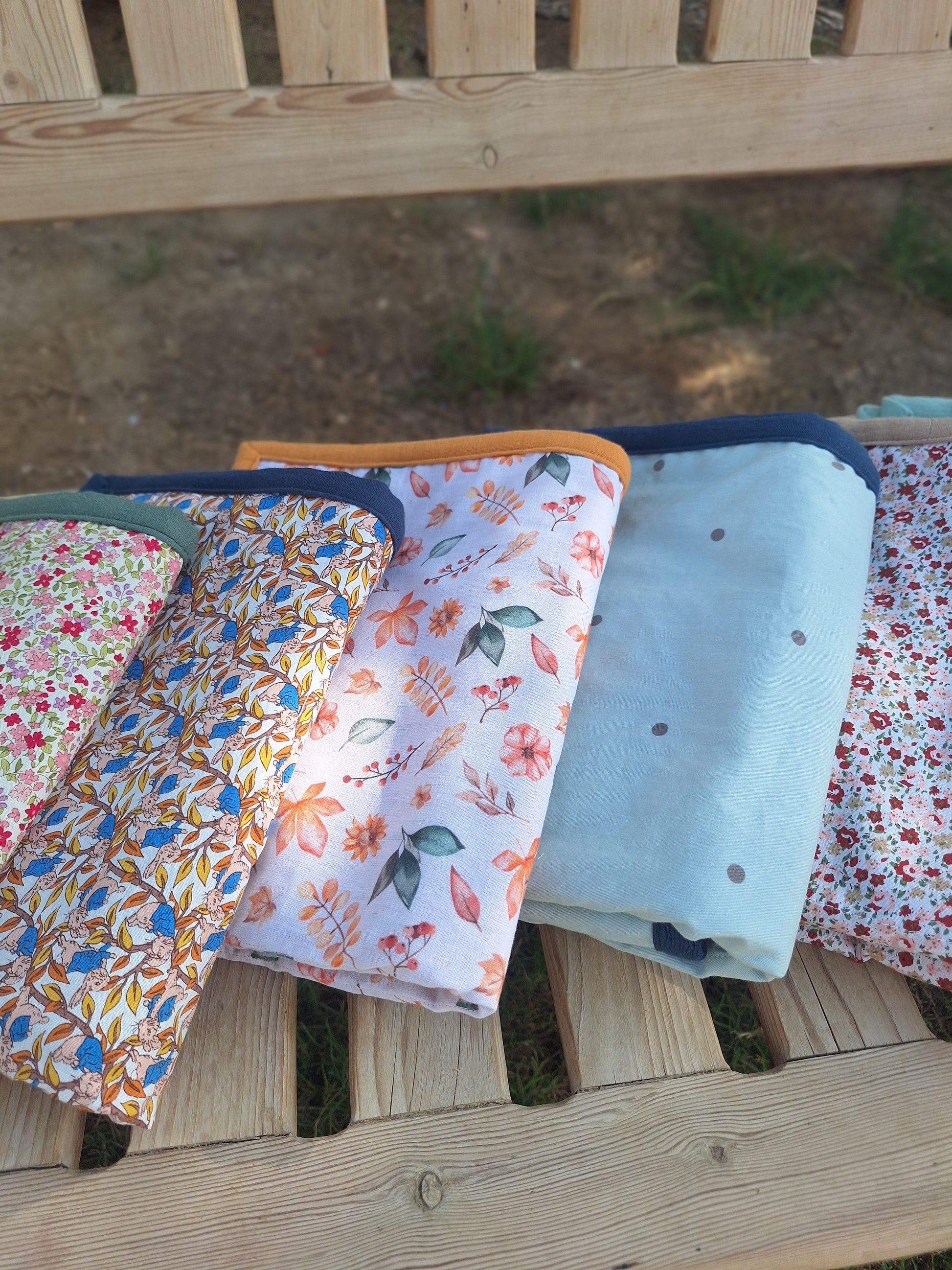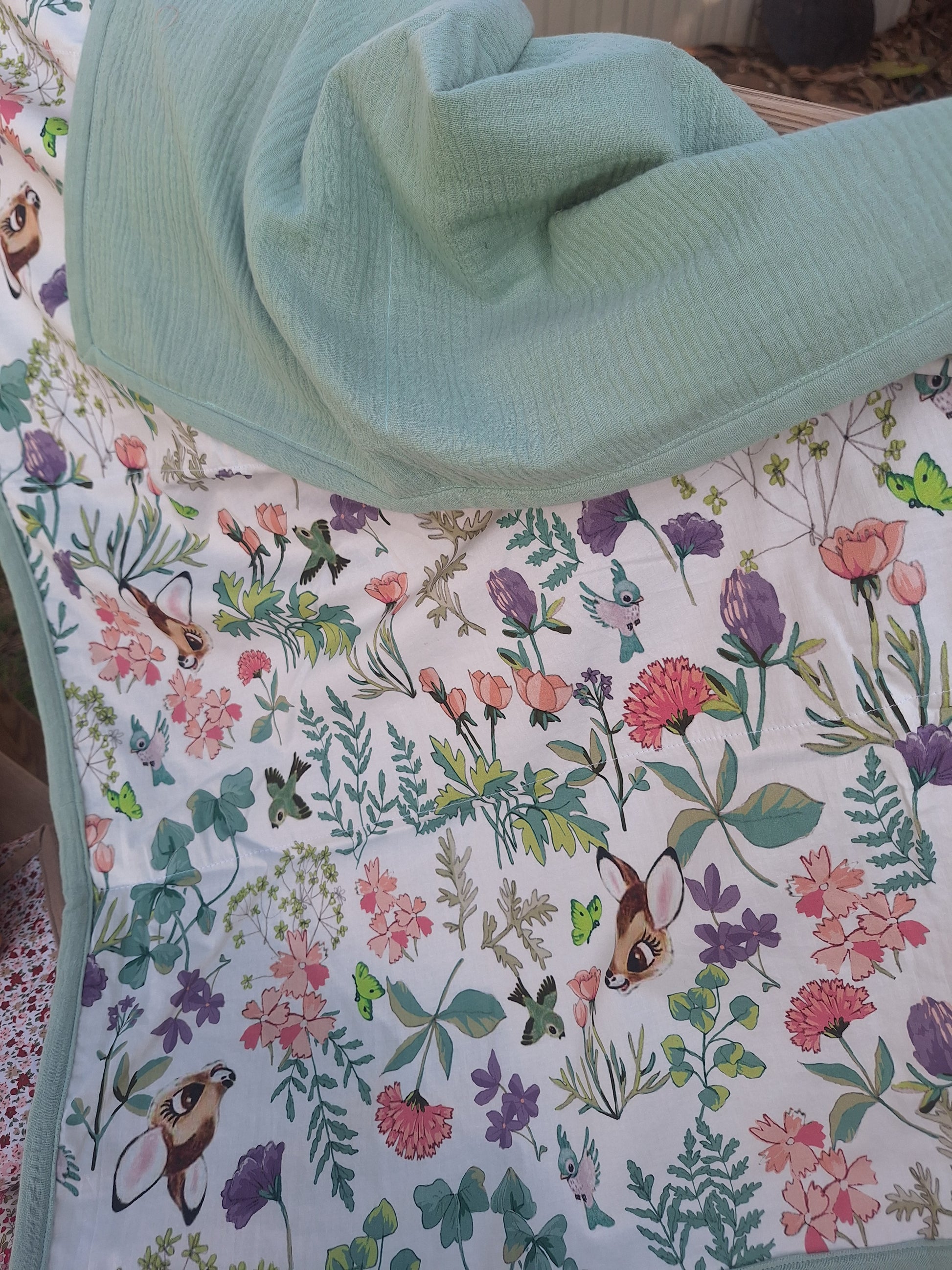 שמיכה תפורה בעבודת יד. עשויה כותנה צבעונית מצד אחד ובד טטרה נעים ורך מהצד השני.