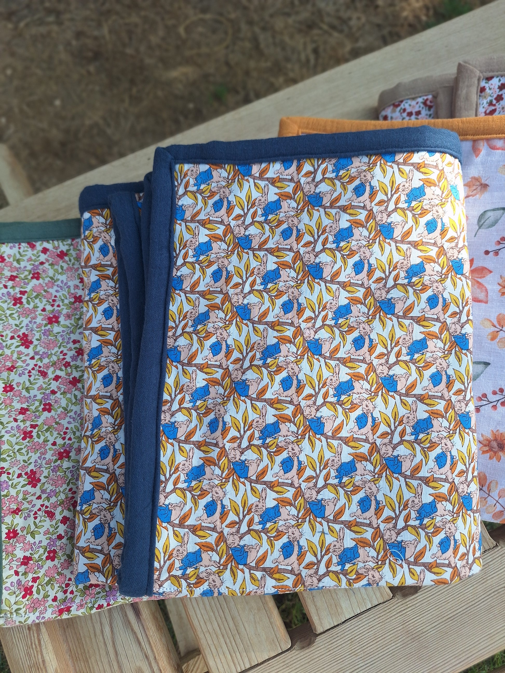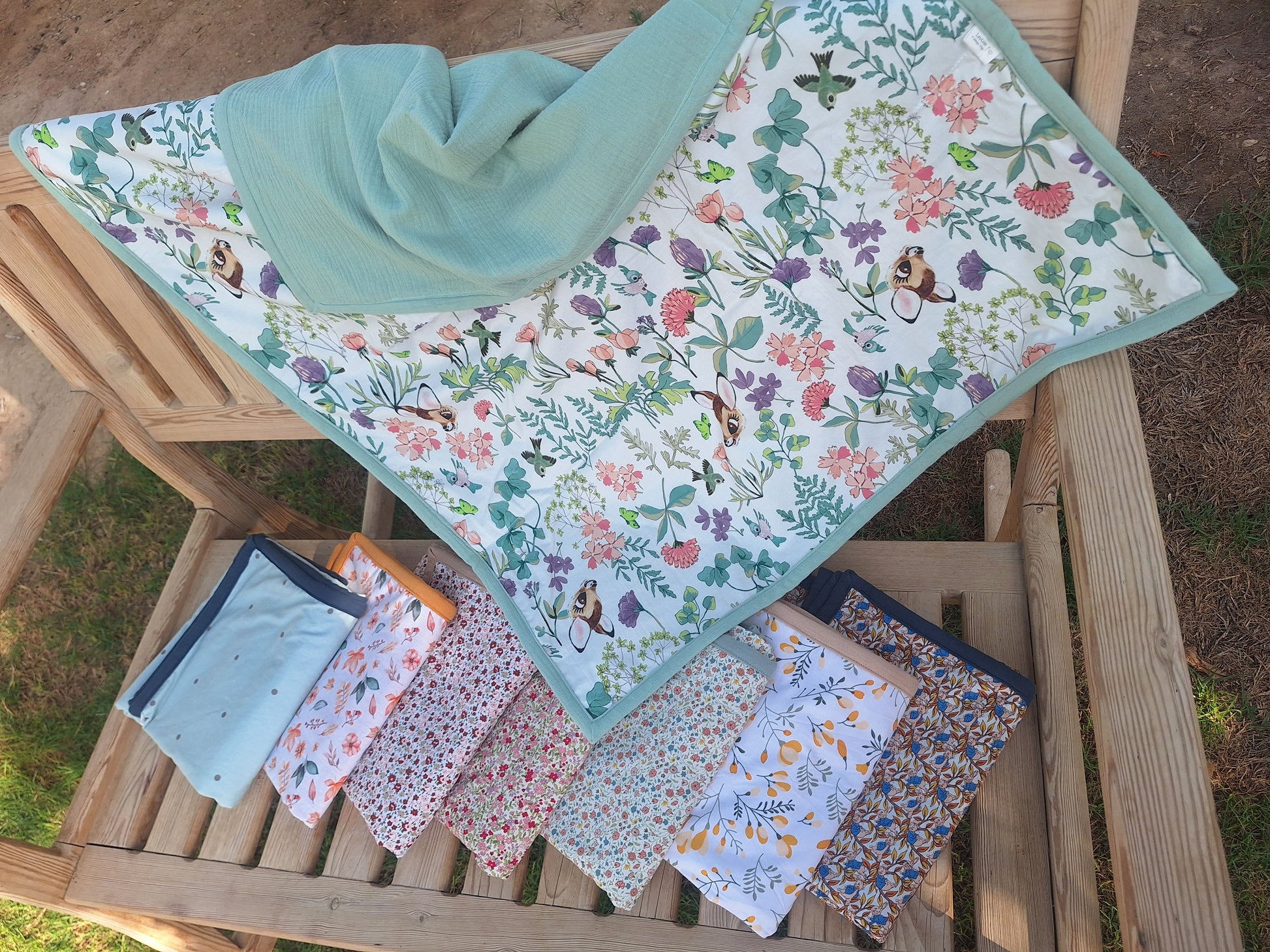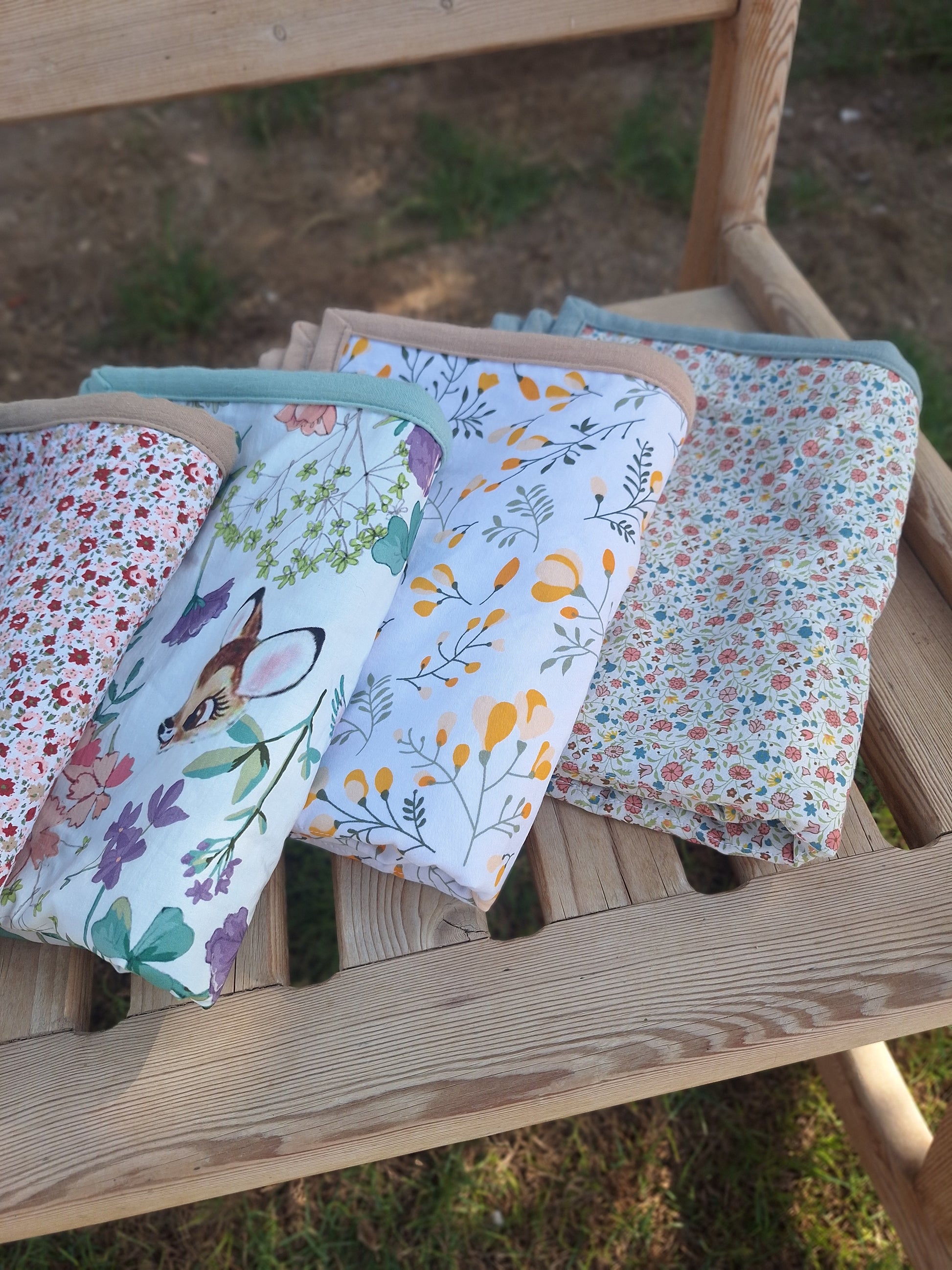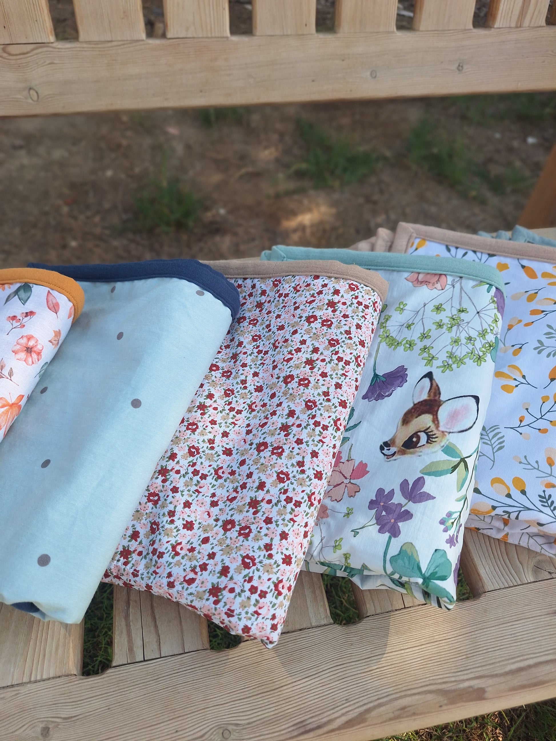 שמיכה תפורה בעבודת יד. עשויה כותנה צבעונית מצד אחד ובד טטרה נעים ורך מהצד השני.