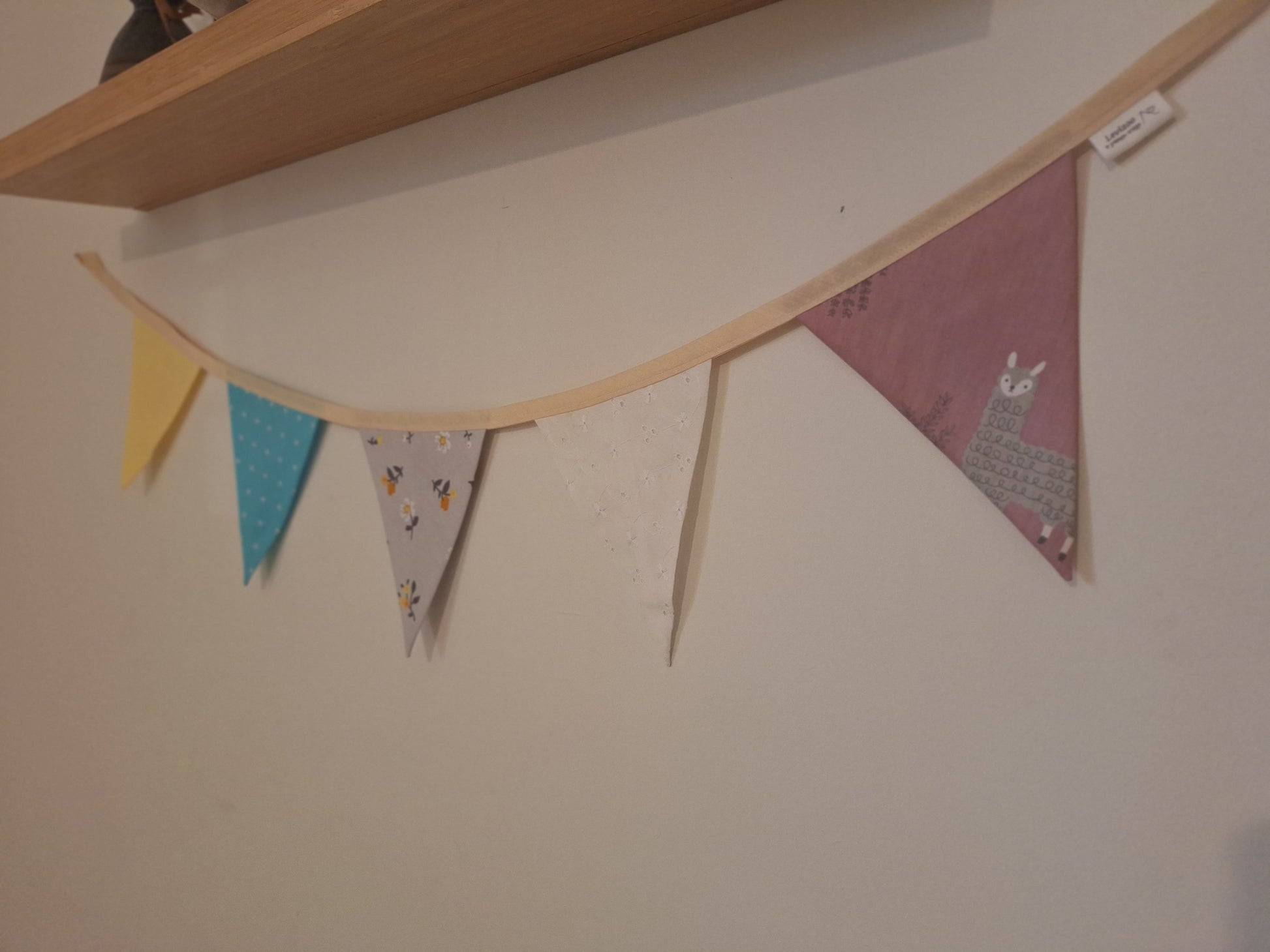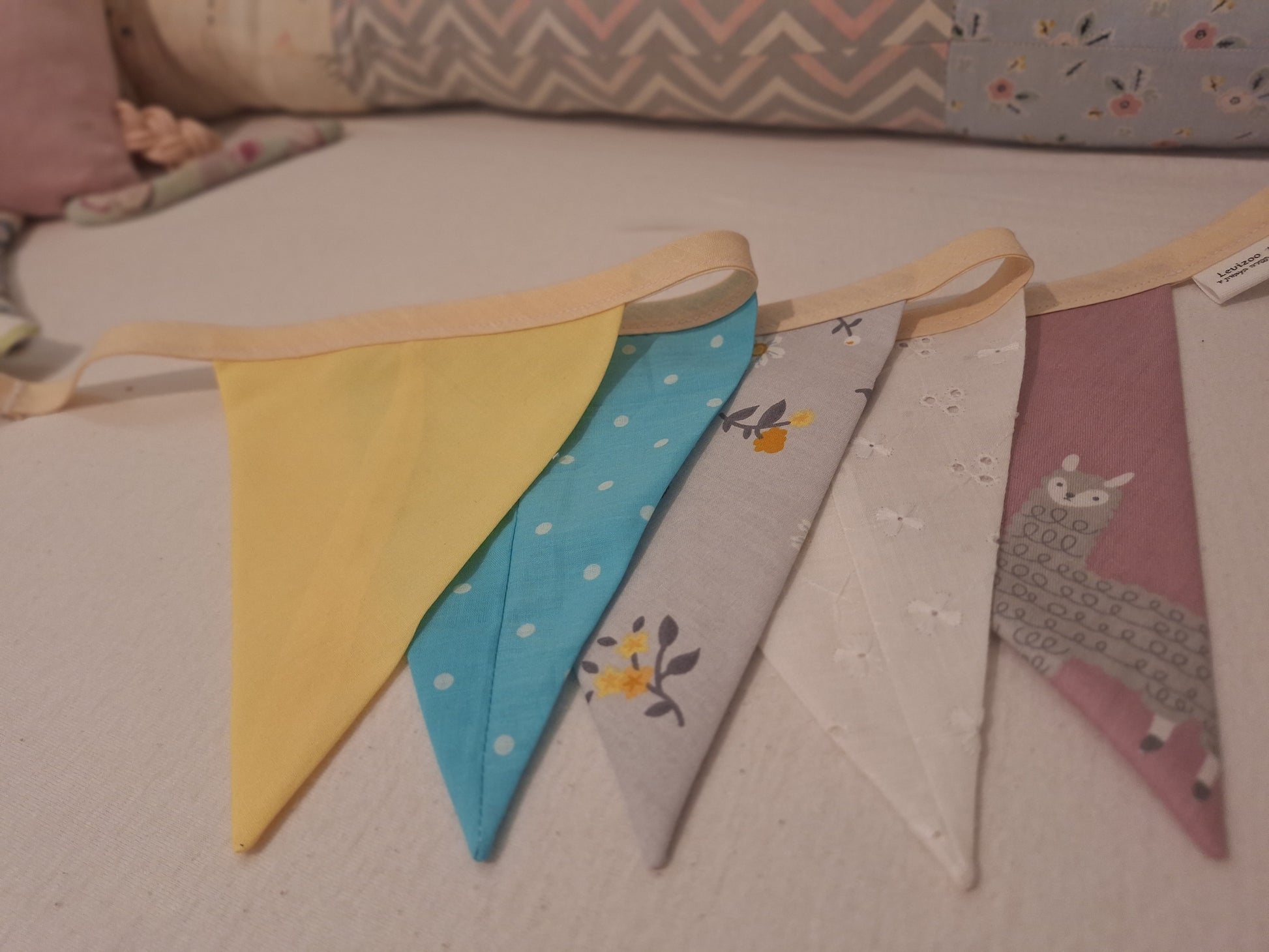 שרשרת דגלונים צבעונית ויפה, עשויה בדי כותנה איכותיים.